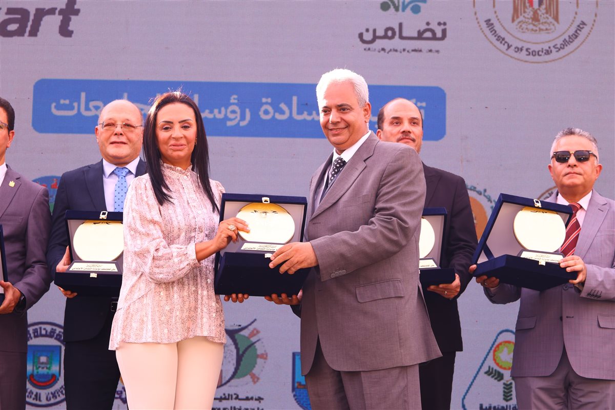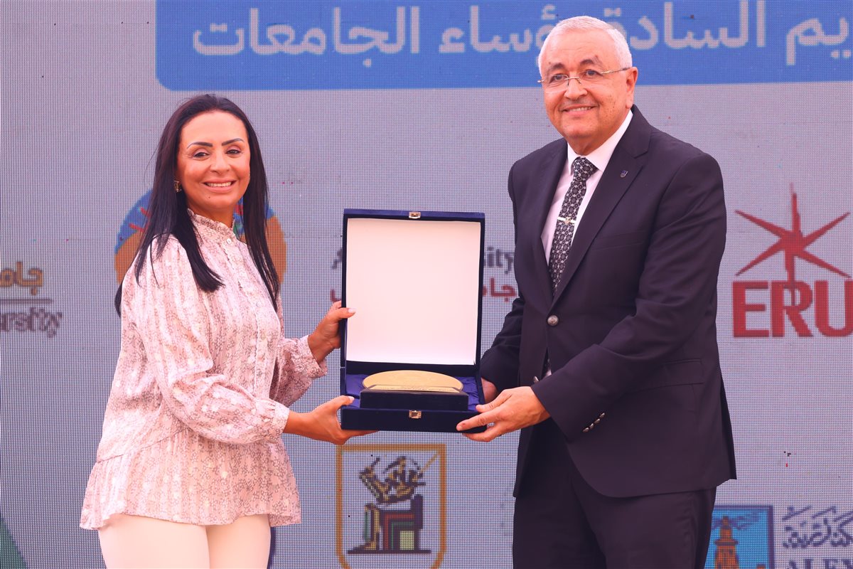 وكرمت الدكتورة مايا مرسي كلا من الدكتورة دينا أبوزيد عميد كلية الإعلام بجامعة 6 أكتوبر، ودكتور سعيد علام نائب رئيس جامعة الإسكندرية لشئون خدمة المجتمع وتنمية البيئة، ودكتور محمد وائل نائب رئيس جامعة جنوب الوادي لشئون الدراسات العليا، والدكتور سامي البهنسي نائب رئيس جامعة الأزهر.