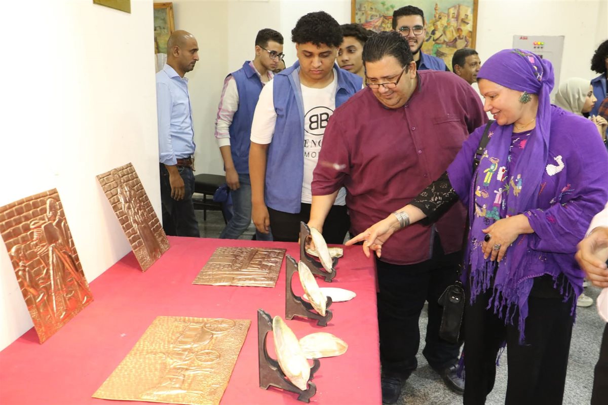 وتنوعت المعروضات ما بين منتجات ورشة "الخيامية" التي قدمها الفنان عماد محمد، والتي تميزت بأشكال تراثية مستلهمة من الطبيعة المصرية كزهرة اللوتس والأسماك، وأعمال ورشة "الحفر في الصدف" مع الفنان جلال عبد الخالق، التي تناولت موضوعات عن النيل والصناعات التراثية.