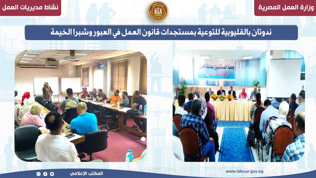 ندوتان بالقليوبية للتوعية بمستجدات قانون العمل في العبور وشبرا الخيمة
