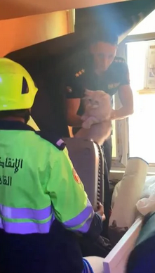 وبالانتقال والوصول تبين وجود قطة معلقة أعلى وحدة تكييف خارجية بالطابق الرابع، بعقار مكون من 4 طوابق بعد الأرضي بمحل البلاغ، وتم إنقاذ القطة بمعرفة القوات بحالة جيدة، واتخاذ الإجراءات القانونية اللازمة تجاه الواقعة.