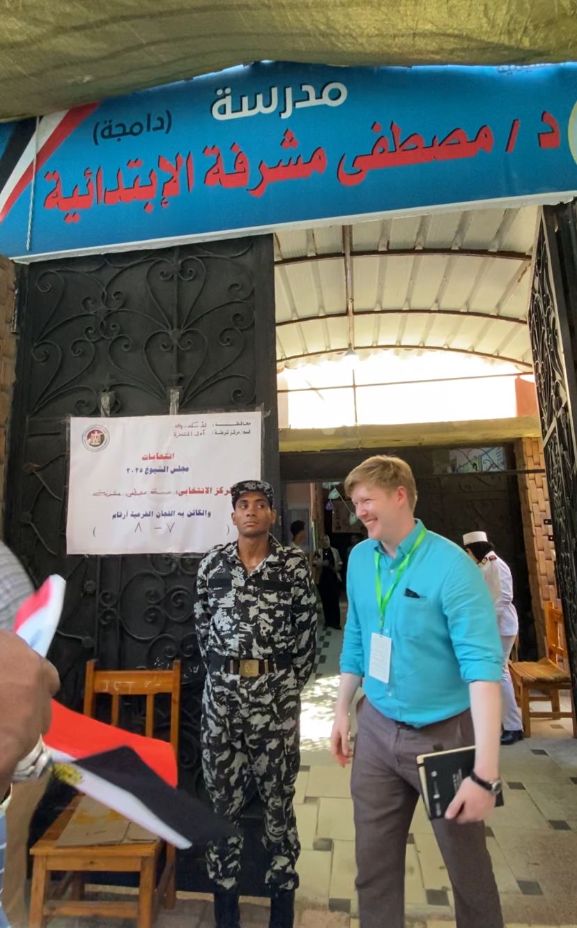 وقد استقبل الناخبون الوفد الدولي امام، بالزغاريد والهتافات "تحيا مصر" حاملين الأعلام المصرية وسط أجواء من البهجة والسعادة للإدلاء بأصواتهم في انتخابات مجلس الشيوخ.