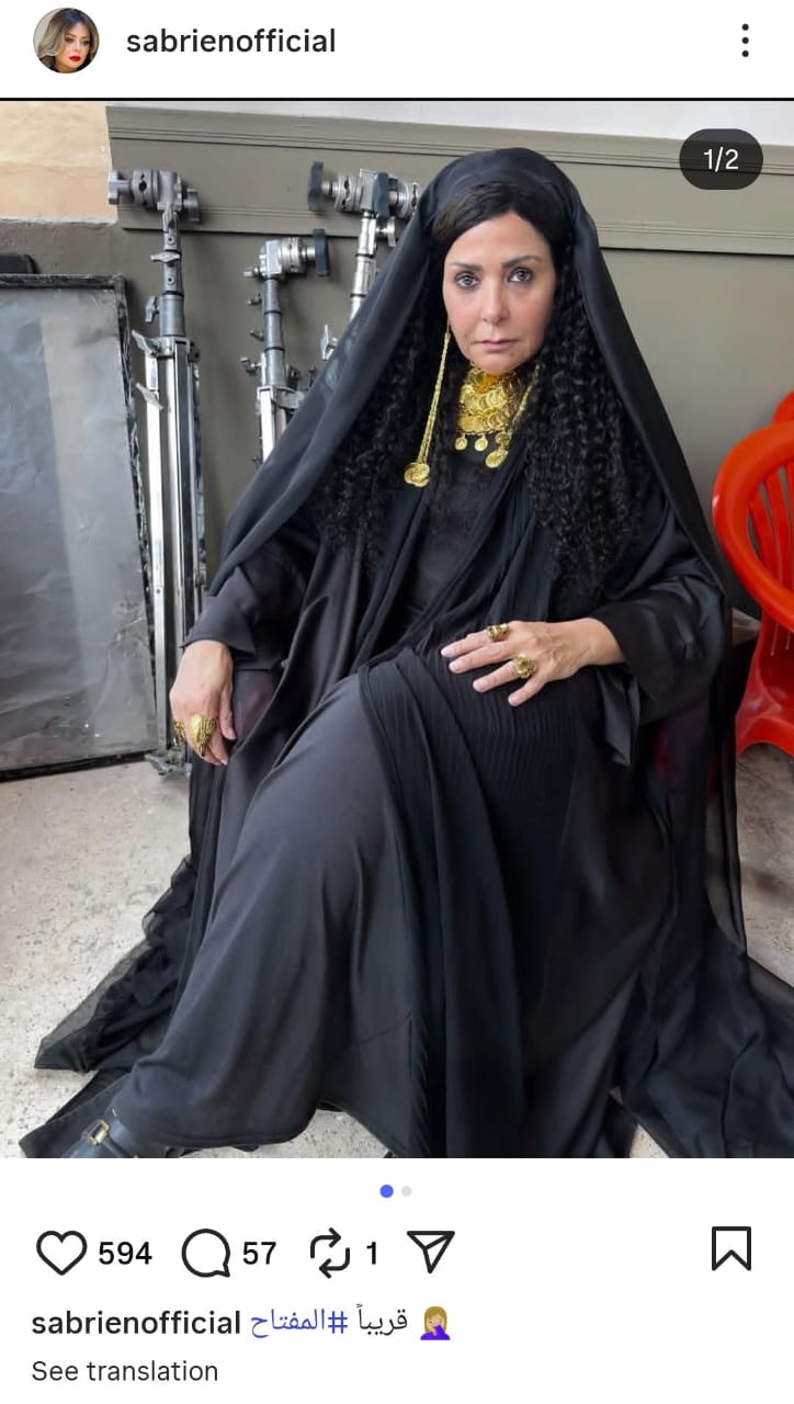 روجت الفنانة صابرين لشخصيتها الجديدة لأحدث أعمالها، فيلم "المفتاح"، التي ظهرت فيه بالشخصية الصعيدية، وهي مرتدية جلباب صعيدي.