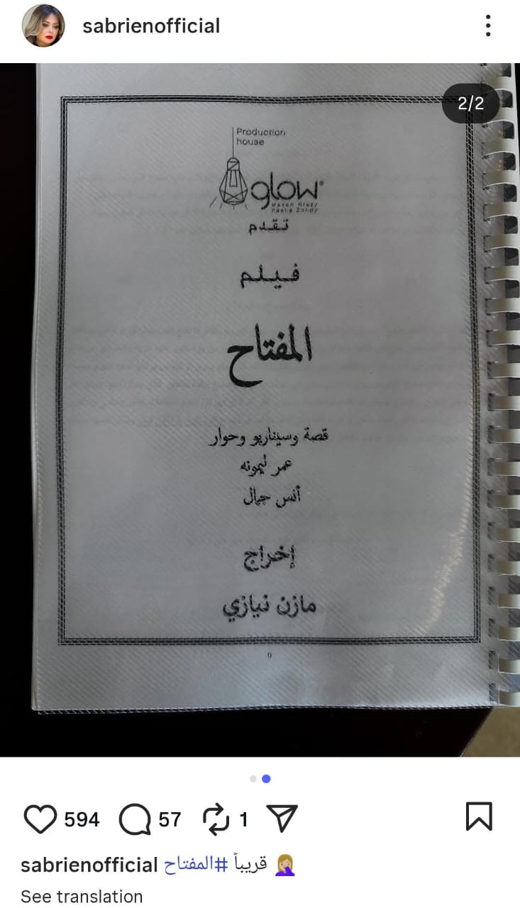 ونشرت الفنانة صابرين الصورة الأولى لها من كواليس فيلم المفتاح، عبر حسابها الرسمي على موقع تبادل الصور والفيديوهات إنستجرام، وعلقت قائلة: "قريبًا المفتاح".