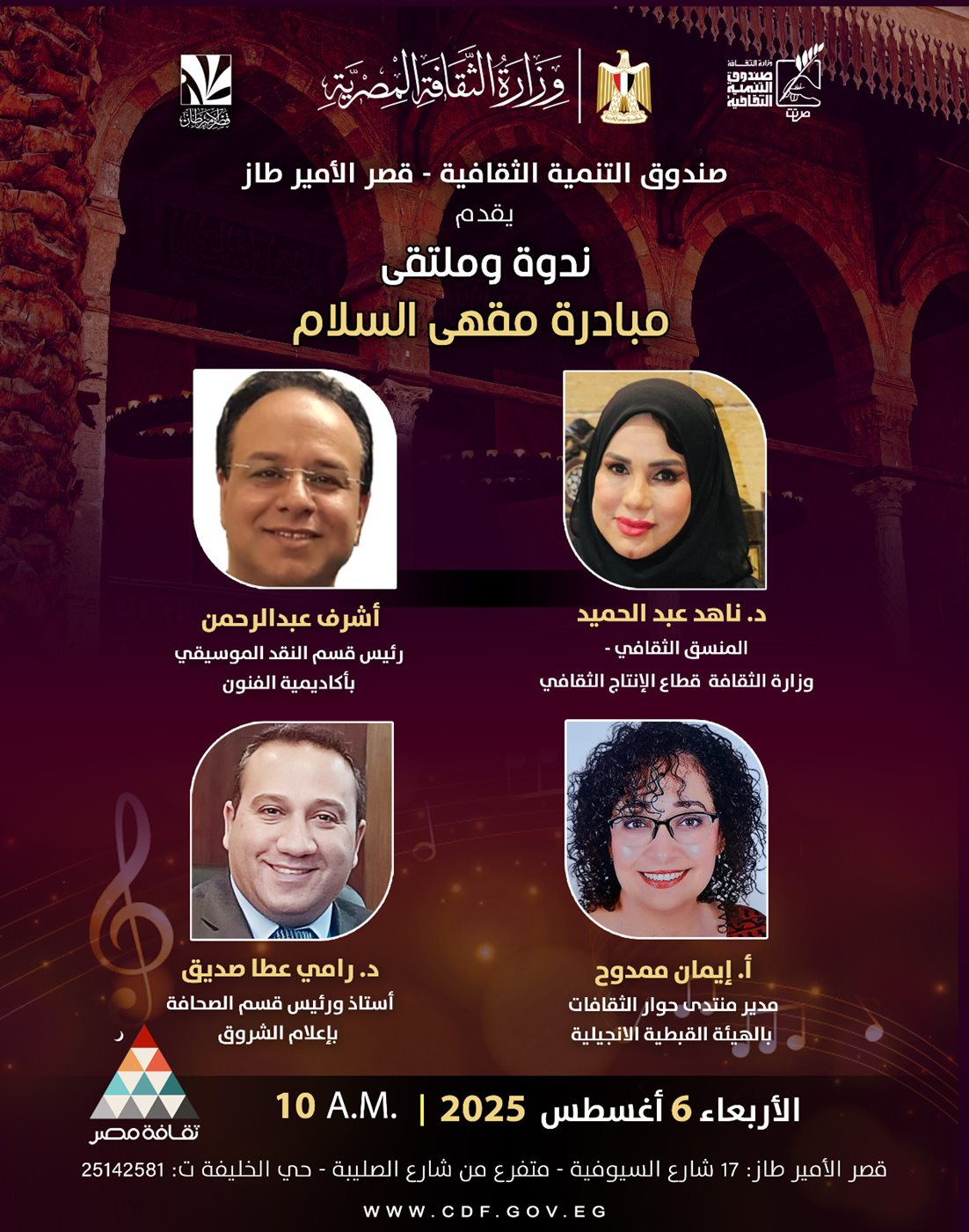 تأتي هذه الفعالية ضمن جهود صندوق التنمية الثقافية لتقديم منصة مفتوحة للحوار البنّاء بين رموز الفكر والثقافة والإعلام، بهدف إرساء قيم التفاهم والتسامح وقبول الآخر، من خلال مبادرة "مقهى السلام" التي تسعى إلى تحويل الثقافة إلى ممارسة مجتمعية مؤثرة.