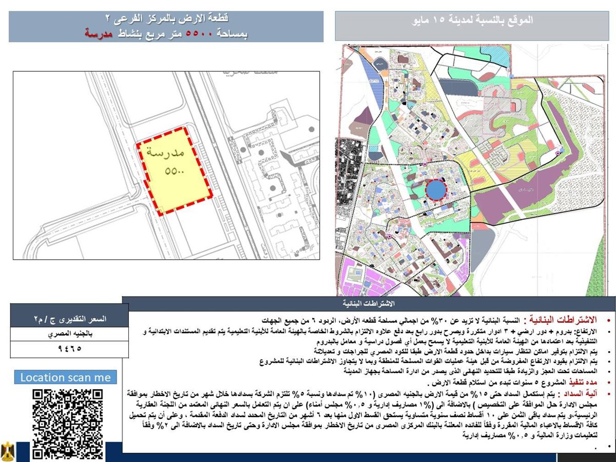 - قطعة أرض بالمركز الفرعي 2 بنشاط مدرسة على مساحة 5500 م².
