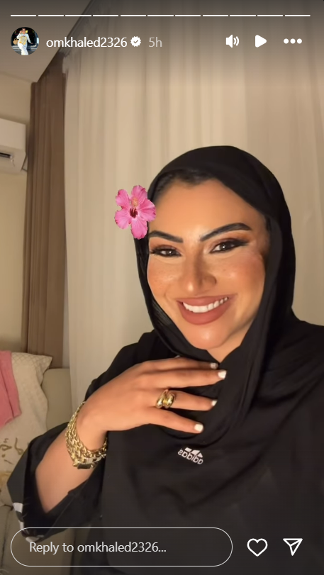 في الوقت نفسه، أطلت أم خالد خلال مقطع فيديو نشرته أيضًا عبر ستوري “إنستجرام”، وهي تستعرض مكياجها وثباته القوي لساعات طويلة، حيث قالت: “طبعا انتوا شفتوا أنا لسه حاطة الميكب من امتى كأني لسه حطاه ولا خطط ولا عمل اي حاجة”، ثم نهت الفيديو بابتسامة عريضة.