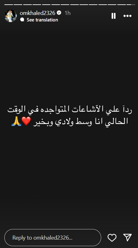 وكتبت أم خالد: “ردا على الإشاعات المتواجدة في الوقت الحالي أنا وسط ولادي وبخير”.