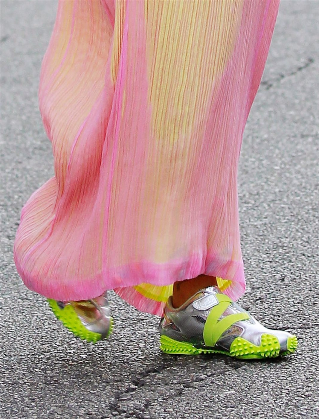 ولن تنسى ريهانا راحتها كأم واختارت زوج من الأحذية الرياضية Puma x Ottolinger Mostro يجمع بين اللونين الفضي والأخضر الليموني، ما أضفى طابعًا عصريًا وعمليًا على مظهرها، وبلغ ثمنه.