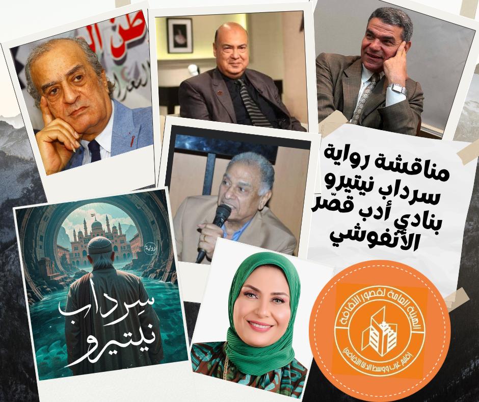 يناقش نخبة من أساتذة النقد والأدب العربي، رواية "سرداب نيتيرو" للأديبة والروائية الدكتورة إيمان مرزوق، في السابعة مساء يوم الاثنين المقبل ١١ أغسطس، بنادي أدب قصر الأنفوشي.