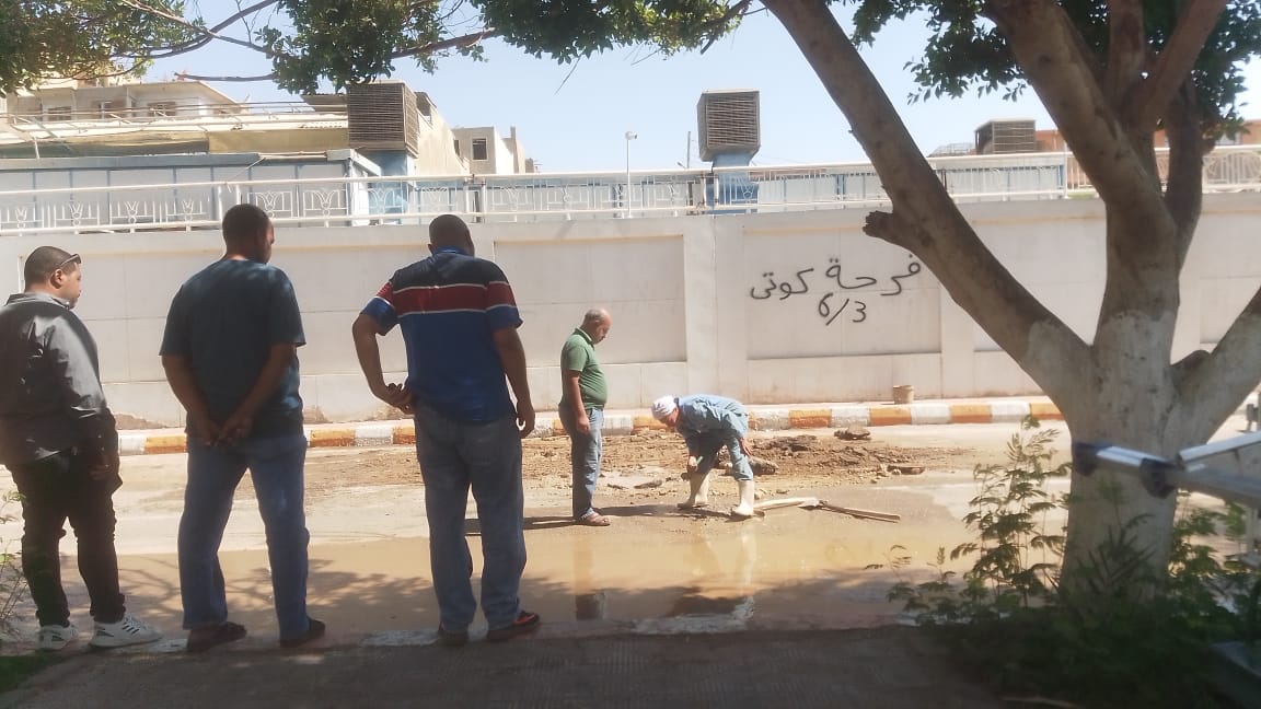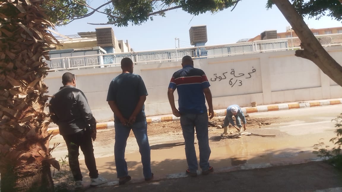 وهرعت سيارت شركة مياة الشرب والصرف الصحى، لشفط وسحب المياه للمساهمة في إصلاح كسر ماسورة مياه نادى الفتيات بواسطة عمال وفنيي ولودر وحفار الشركة، وإعادة حركة المرور للاتجاهين.