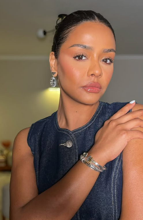 واستكملت اللوك بحذاء أبيض أنيق من خامة شبكية، أضفى لمسة من النعومة والراحة على الإطلالة، إلى جانب اعتمادها على إكسسوارات فضية بسيطة عززت من جمال المظهر دون مبالغة.
