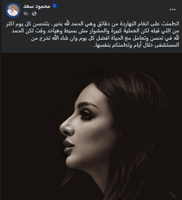 وكتب محمود سعد: "اتطمنت على أنغام النهاردة من دقائق وهي الحمد لله بخير.. بتتحسن كل يوم أكتر من اللي قبله لكن العملية كبيرة والمشوار مش بسيط وهياخد وقت".