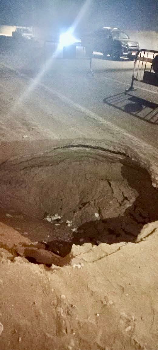 هبوط أرضي بمحور جامعة السادات بالمنوفية
