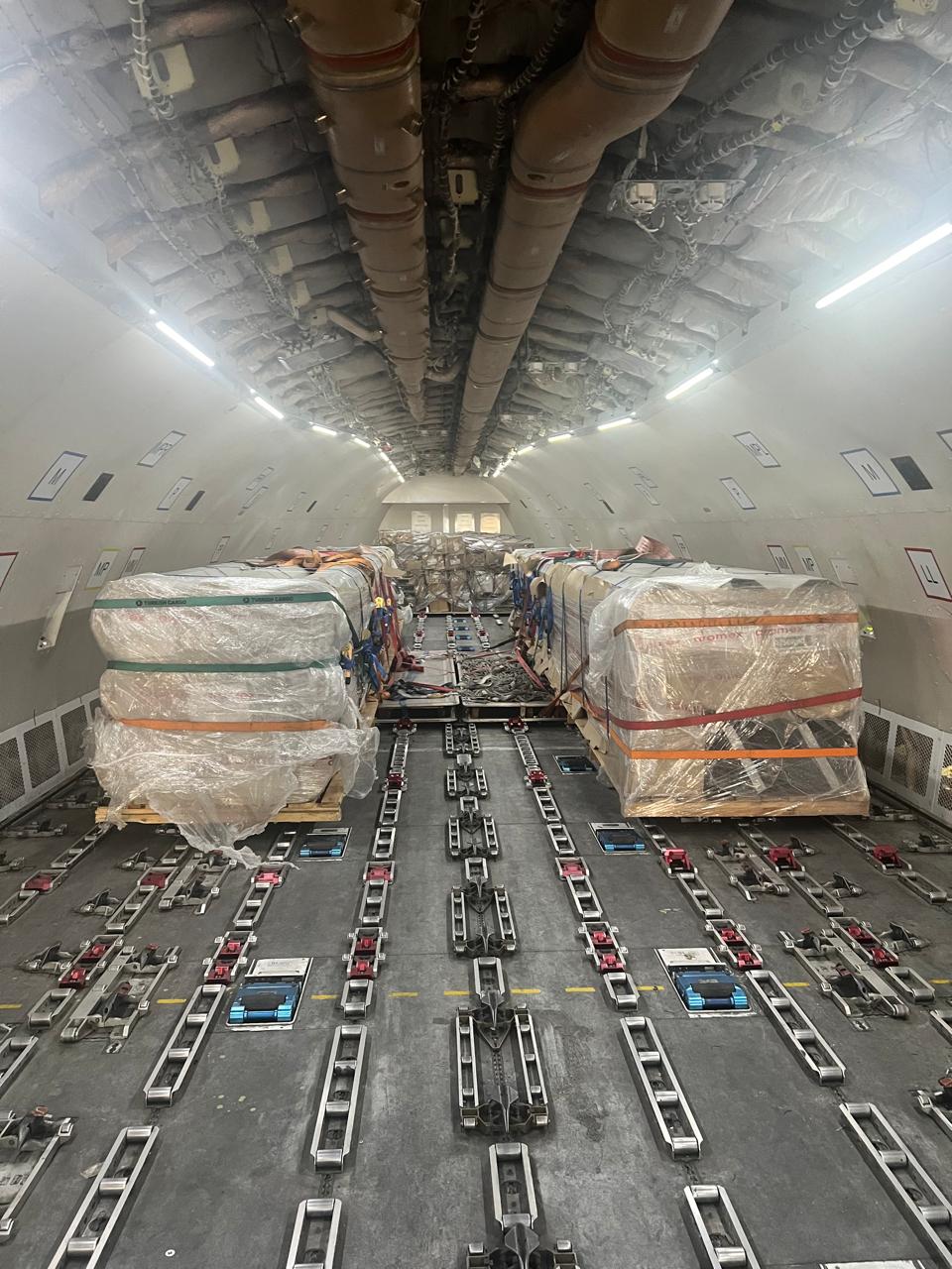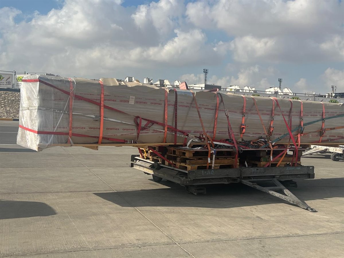وقد بلغ الوزن الإجمالي للشحنة حوالي 22 طن، موزعة على 7 طرود ضخمة، بمقاسات بلغت 9 أمتار طولًا × 130 سم عرضًا × 125 سم ارتفاعًا لكل طرد، وبمتوسط وزن يتراوح بين 2900 كجم و3300 كجم للطرد الواحد.
