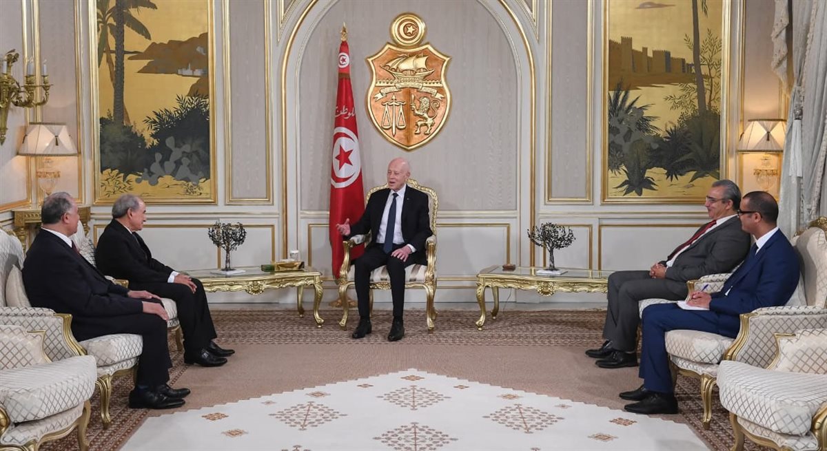 التقى وفد من اتحاد المحامين العرب، برئاسة عبدالحليم علام، رئيس الاتحاد، رئيس جمهورية تونس الدكتور قيس سعيد، في القصر الرئاسي بقرطاج.