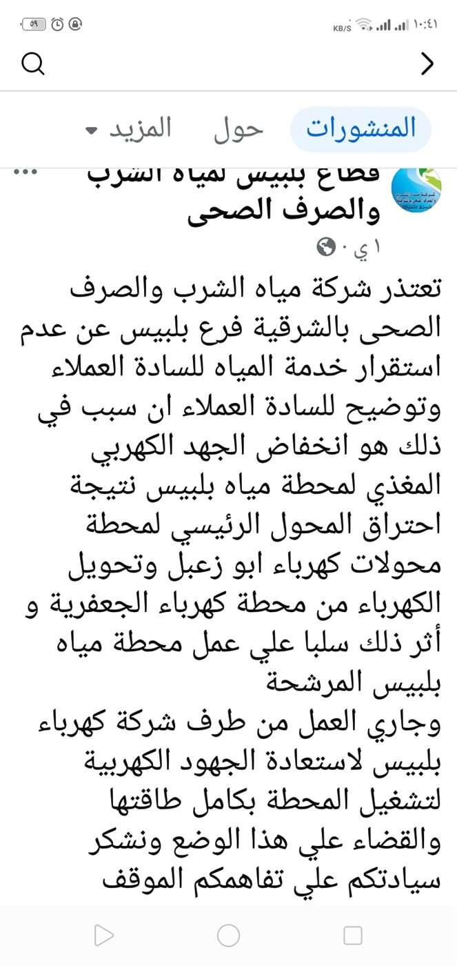 وجاء في نص الاستغاثة: «نحن أهالي مركز ومدينة بلبيس بمحافظة الشرقية نتقدم إليكم بهذه الاستغاثة العاجلة، بعد أن فاض بنا الكيل من المعاناة المستمرة نتيجة تكرار انقطاع التيار الكهربائي وضعف الجهد وعدم اتزانه على نحو شبه يومي».