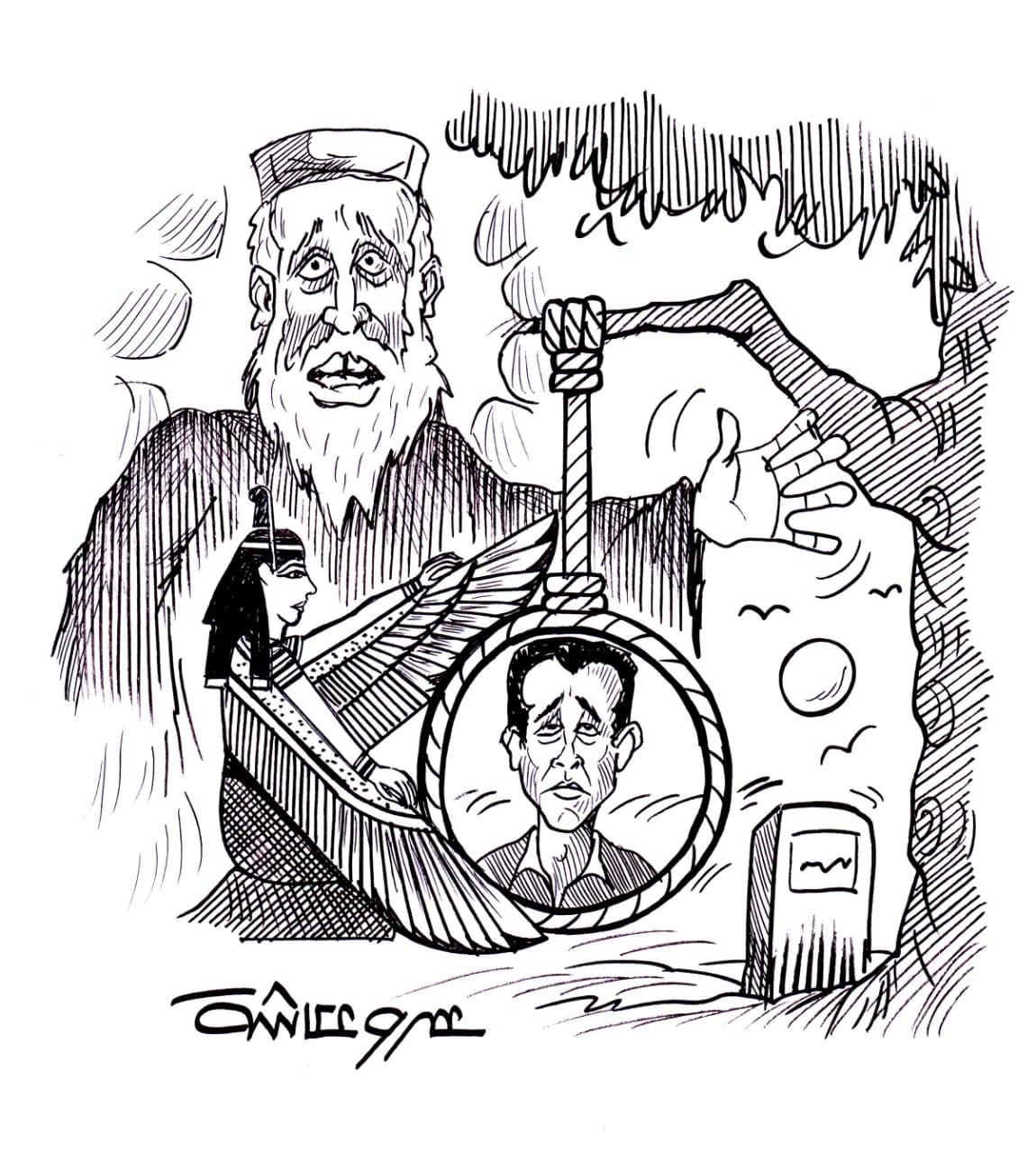 تضاءل الشيخ لما سمع من الفتى منطقه وأمسكه من حبل المشنقة يشده إليه كى لا يصعد إلى الشجرة المشؤومة، كان يشد وكان الفتى يشد، لم ينتبه إلا وقد باغته الموت.