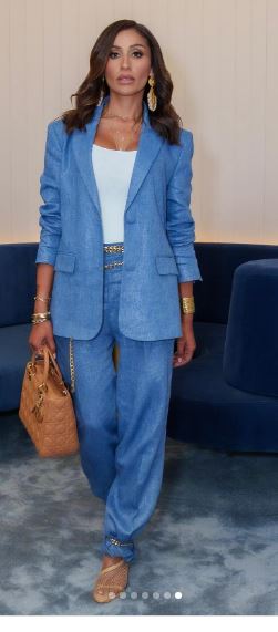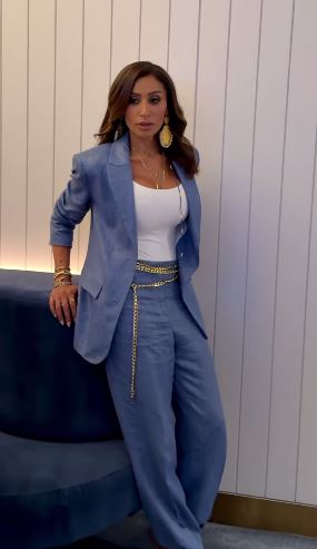 وبدت دينا الشربيني بإطلالة عصرية، مرتديه بدلة صممت من الجينز بصيحة الأوفر سايز ونسقت معه بادي أبيض مجسم، وتزينت بحزام رفيع ذهبي حول خصرها.