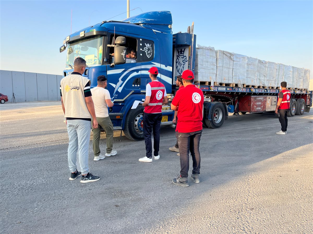 ويتواجد الهلال الأحمر المصري كآلية وطنية لتنسيق وتفويج المساعدات إلى غزة، على الحدود منذ بدء الأزمة حيث لم يتم غلق معبر رفح من الجانب المصري نهائيًا، وواصل تأهبه فى كافة المراكز اللوجستية وجهوده المتواصلة لدخول المساعدات التي بلغت أكثر من نصف مليون طن من المساعدات الإنسانية و الإغاثة، وذلك بجهود 35 ألف متطوع بالجمعية.