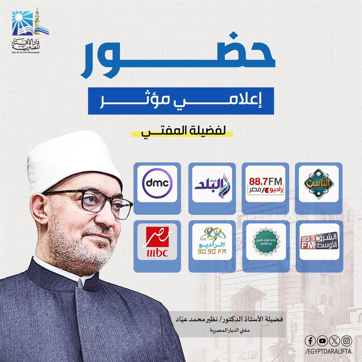 ففي خلال شهر رمضان المبارك، برز هذا الحضور الإعلامي بصورة غير مسبوقة، حيث شارك فضيلته في برامج يومية على إذاعات مهمة مثل "إذاعة القرآن الكريم"، و"راديو مصر"، و"راديو 9090"، و mbc مصر، و dmc, إلى جانب إطلالات ثابتة عبر شاشات "الناس" و"صدى البلد"، وكتابة سلسلة مقالات صحفية لمد جسور التواصل مع مختلف فئات المجتمع. كما واصل أمناء الفتوى تقديم برنامج "فتاوى الناس" يوميًّا على شاشة "الناس"، وبث فتاوى عبر قنوات "القاهرة الفضائية" و"النيل الثقافية" و"قناة الدلتا"، بالإضافة إلى البث المباشر عبر منصات التواصل الاجتماعي. وترافقت هذه الأنشطة مع مبادرات رمضانية تفاعلية لنشر قيم التسامح والتدبر، مثل: "رمضان بلا خلافات"، و"تدبر مع دار الإفتاء"، و"ومضات رمضانية"، و"الأدعية الرمضانية اليومية".