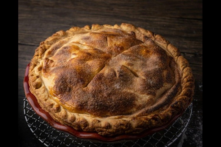 افردي الكرة الثانية من العجينة لتشكيل دائرة أخرى، وضعيها فوق الحشوة، واقرصي أطراف العجينتين معاً لإغلاق الفطيرة جيداً.