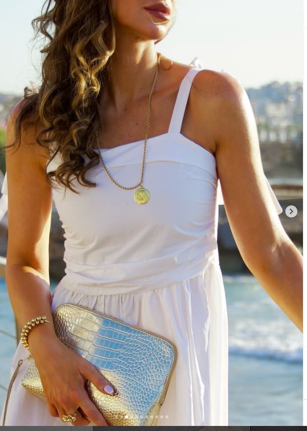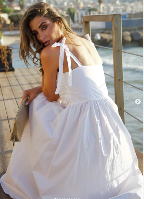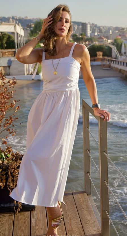 وبدت أنابيلا هلال بإطلالة عصرية، مرتديه فستان طويل بدون أكمام صمم منق ماش ناعم باللون الأبيض وتزينت ببعض الأكسسوارات العصرية لتزيد من أناقتها.
