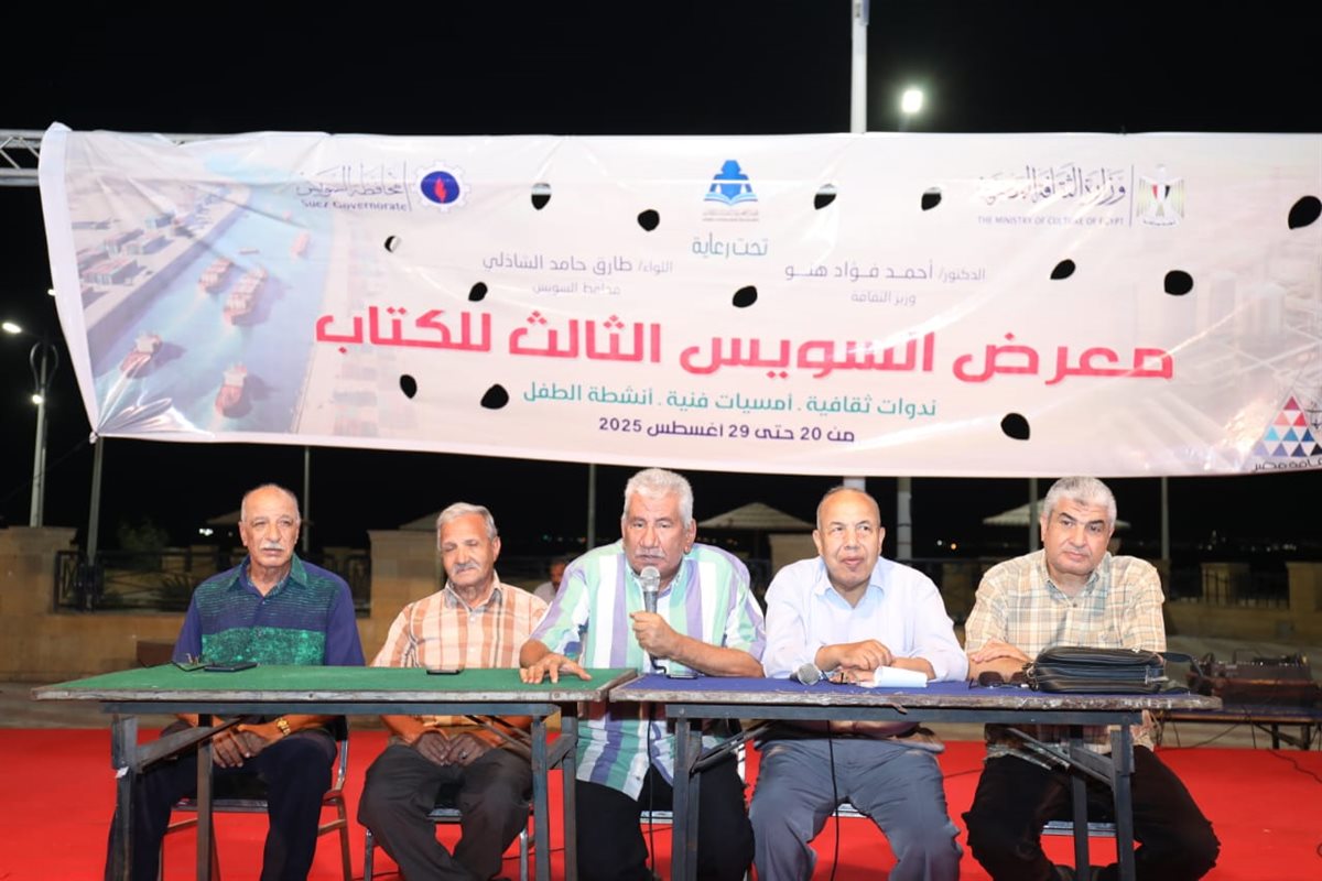 معرض السويس للكتاب.. تحت رعاية الدكتور أحمد فؤاد هنو وزير الثقافة، شهد جمهور معرض السويس الثالث للكتاب، المقام حاليا على ممشى المحافظة، من تنظيم الهيئة المصرية العامة للكتاب، لقاءً مميزًا جمع نخبة من الشعراء والباحثين والفنانين المهمومين بالتراث الثقافي للمدينة، حيث دار النقاش حول قيمة السمسمية وأغانيها الشعبية، وطقوس ليلة الحناء بما تحمله من دلالات تاريخية وفنية وإنسانية.