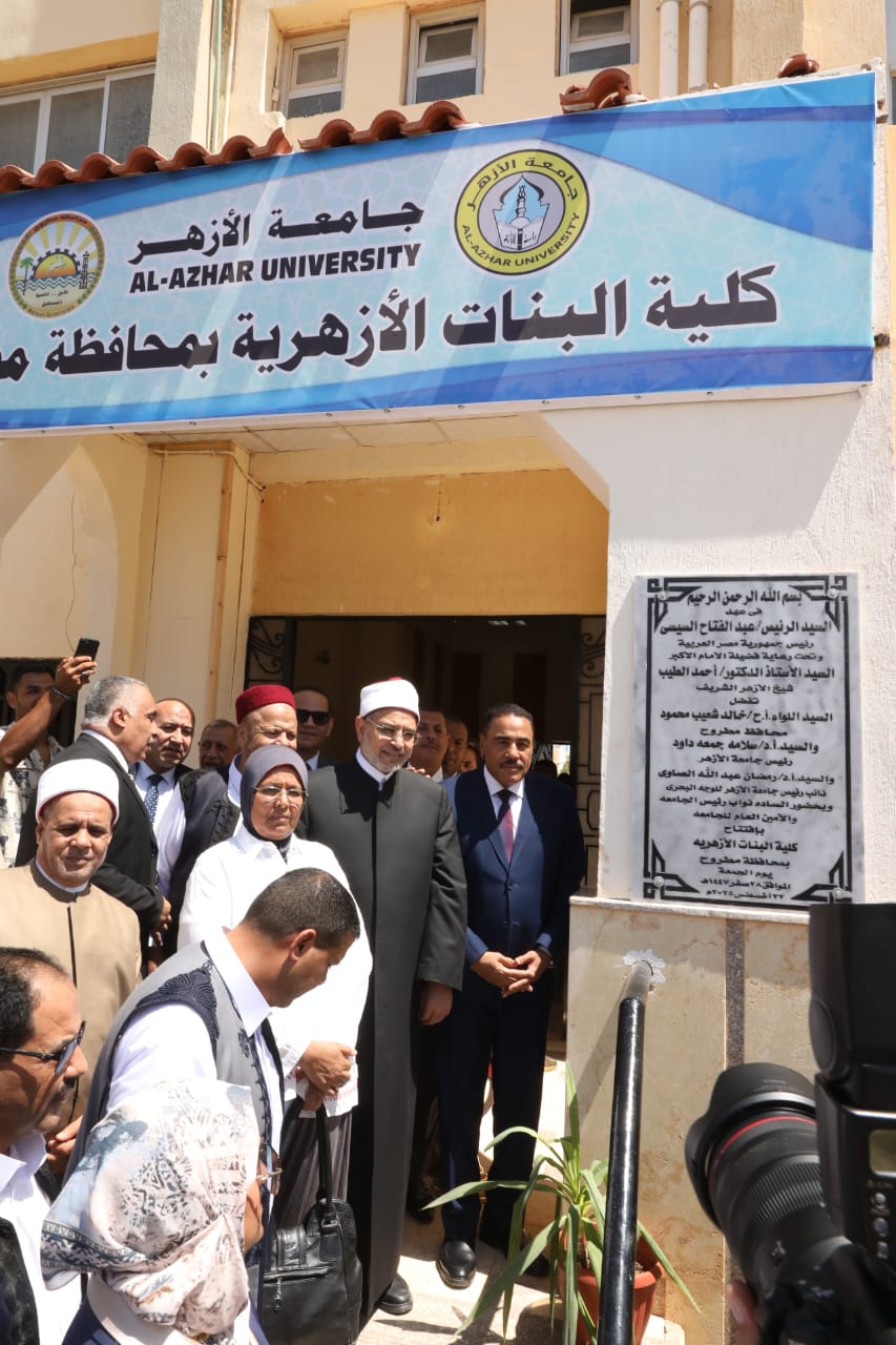 افتتح الدكتور سلامة جمعة داود، رئيس جامعة الأزهر، واللواء أركان حرب خالد شعيب، محافظ مطروح، والدكتور إسماعيل عبد الغفار، رئيس الاكاديمية العربية للنقل البحري والتكنولوجيا، والدكتور عمرو المصري، رئيس جامعة مطروح، والدكتور إسلام رجب، نائب المحافظ، واللواء مجدي الوصيف، السكرتير العام، وأعضاء مجلس الشيوخ بمطروح، والدكتور رمضان الصاوي، نائب رئيس جامعة الازهر للوجه البحري، والدكتور سيد بكري، نائب رئيس الجامعة لشئون التعليم والطلاب، والأستاذ محمد عبد الخالق، أمين عام الجامعة؛ كلية البنات الأزهرية بمحافظة مطروح.