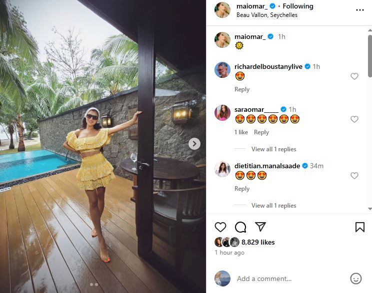 شاركت الفنانة مي عمر متابعيها بأحدث إطلالاتها عبر حسابها الشخصي بموقع الإنستجرام، خلال قضائها عطلتها الصيفية برفقة أسرتها.