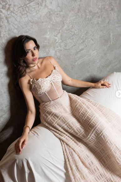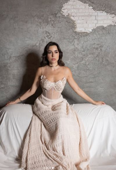 وبدت سارة أبي كنعان بإطلالة ساحرة، مستوحاه من أحدث صيحات موضة فساتين ربيع وصيف 2025-2026، مرتدية فستان طويل مجسم من أعلى ينتمي لقصة الكورسية وفضفاض من أسفل، صمم من قماش التل مع الكريب باللون البيج الفاتح لتصبح مثال تقتدي به صاحبات الذوق المتمرد في سهراتهن الخاصة.