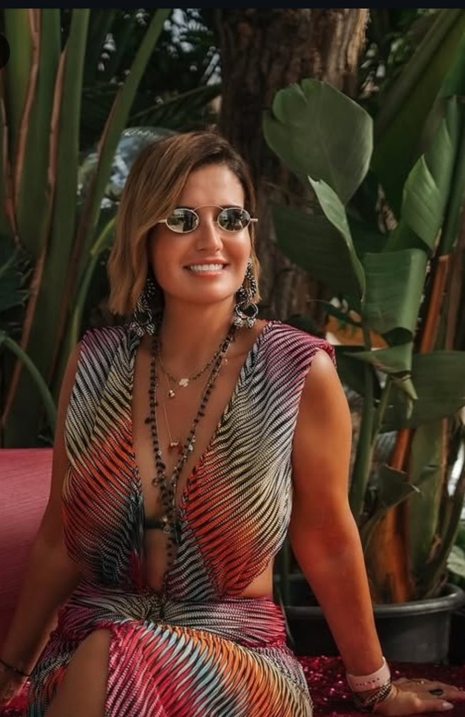 وبدت هنا شيحة بإطلالة صيفية تميل للجرأة، مرتديه فستان مكشوف صمم من قماش الشيفون وتزينت ببعض الاكسسوارات الشبابيةَ.