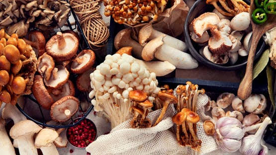 المشروم من أبرز الأطعمة النباتية القادرة على تعزيز إنتاج فيتامين D عند تعرضه للشمس، بطريقة مشابهة للبشرة البشرية. إلا أن محتوى الفيتامين يختلف من نوع لآخر؛ فأنواع مثل شيتاكي، مايتاكي، وبورتوبيللو، سواء جُففت تحت الشمس أو زُرعت بتقنية الأشعة فوق البنفسجية، تحتوي على مستويات مرتفعة منه، في حين أن فطر الأزرار الأبيض الشائع، المزروع في أماكن مغلقة والمغلف بالبلاستيك، يكاد يخلو من الفيتامين.