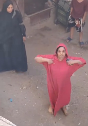 وظهرت السيدة في مقطع فيديو لم يتجاوز 20 ثانية، تقول فيه لـ جارتها «صوري براحتك.. أنا ما بيهمنيش الحكومة»، وحاول المتواجدون في الشارع إيقافها؛ لكنها لم ترتدع.