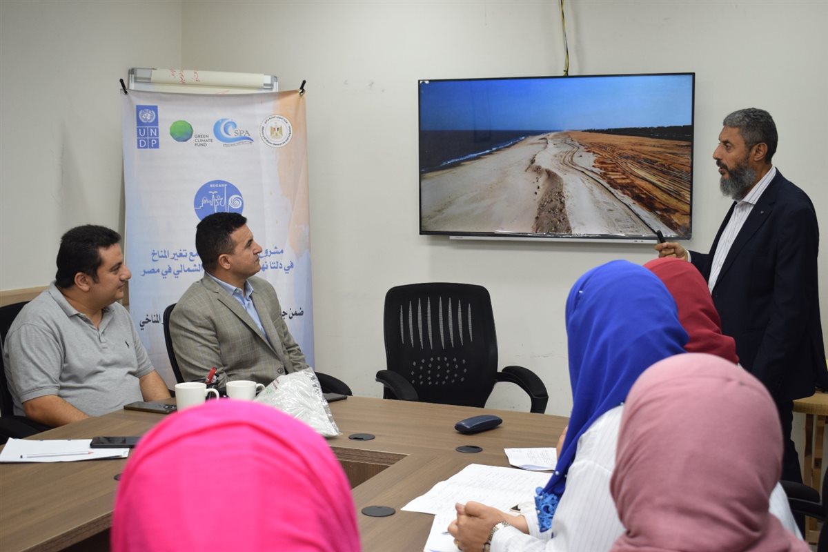 واستعرض الدكتور محمد أحمد علي، المدير التنفيذي للمشروع، مخاطر التغير المناخي على دلتا نهر النيل، وجهود الدولة المبذولة للتعامل مع هذه المخاطر من خلال الأنشطة المختلفة للمشروع، وشمل ذلك أعمال الحماية التي نفذت لثلث الدلتا بتقنيات صديقة للبيئة الساحلية، بالإضافة إلى مخرجات خطة الإدارة المتكاملة للمناطق الساحلية، التي تهدف إلى وضع رؤية مستقبلية لصناع القرار حول المخاطر المتوقعة على طول ساحل مصر على البحر المتوسط وسيناريوهاتها حتى عام 2100، وتحديد أدوار الجهات المعنية والإجراءات المتبعة للتعامل والتكيف مع آثار هذه المخاطر وفقا للاطار المؤسسي للخطة.