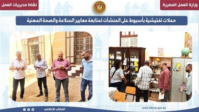 هذا وتواصل مديريات العمل في المحافظات تنفيذ خطة "الوزارة" بشأن التدريب المهني وتأهيل الشباب على احتياجات سوق العمل،وتوفير فرص عمل لائقة ،ونشر ثقافة السلامة والصحة المهنية في مواقع الإنتاج ،وتعزيز علاقات العمل بين طرفي العملية الإنتاجية.