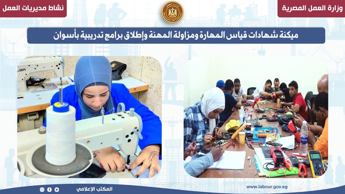 ميكنة شهادات قياس المهارة ومزاولة المهنة وإطلاق برامج تدريبية بأسوان