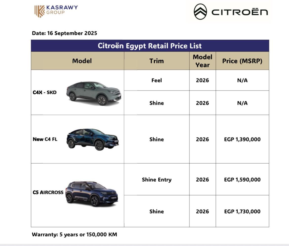 كما كشفت مجموعة قصراوي جروب، وكيل علامة سيتروين (Citroën) الفرنسية في مص، عن نيتها الإعلان قريبًا عن تخفيضات على أسعار سيارات سيتروين C4X المجمعة محليًا.