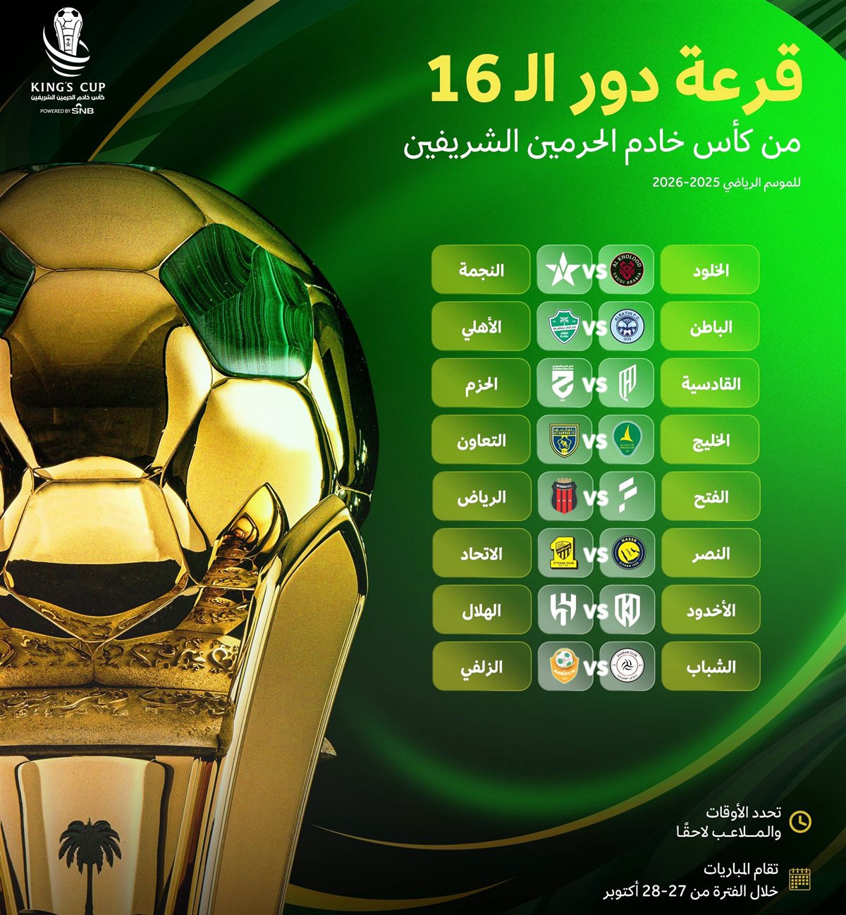نتيجة قرعة دور الـ16 من كأس خادم الحرمين