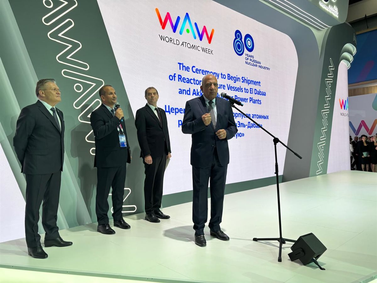 شهد الدكتور محمود عصمت وزير الكهرباء والطاقة المتجددة ، مراسم نقل وعاء ضغط المفاعل للوحدة النووية الاولى من ميناء مدينة سانت بطرسبورج إلى موقع المحطة النووية بالضبعة ، وذلك على هامش مشاركته فى القمة النووية العليا وفعاليات الأسبوع الذري العالمي بالعاصمة الروسية موسكو، وتمت المراسم بحضور الدكتور شريف حلمى رئيس هيئة المحطات النووية، والدكتور احمد فرغل رئيس الجهاز التنفيذى للإشراف على المشروعات النووية ، ومن الجانب الروسي ، أليكسى ليخاتشوف المدير العام للمؤسسة الحكومية الروسية للطاقة الذرية " روساتوم " والدكتور اندري بيتروف النائب الأول لمدير عام المؤسسة ، ورئيس شركة "آتوم ستروى إكسبورت " القائمة على تنفيذ مشروع المحطة النووية بالضبعة ، بالاضافة عدد من مسئولي الملف النووى والاستخدامات السلمية للطاقة النووية فى مصر ، وروسيا