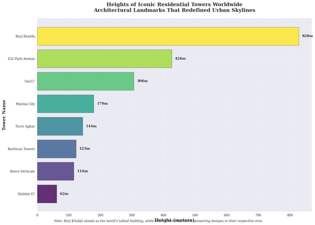 الرسم التوضيحي: ارتفاعات الأبراج الأيقونية السكنية حول العالم – معالم معمارية أعادت تعريف الأفق الحضري