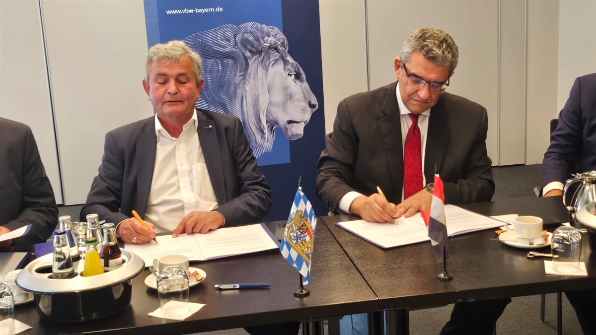 أعلن وزير العمل محمد جبران، اليوم السبت، عن توقيع مُذكرة تفاهم بين الحكومة المصرية مُمثلة في وزارة العمل، وحكومة جمهورية ألمانيا الاتحادية، مُمثلة في اتحاد الصناعات بولاية بافاريا الألمانية "vbw" ، وذلك بمقر اتحاد الصناعات بالولاية، ووقع على المذكرة نيابة عن سيادته، السفير محمد البدري سفير مصر في جمهورية ألمانيا الاتحادية، وبيرترام بروسارت الرئيس التنفيذي لاتحاد الصناعات بولاية بافاريا.