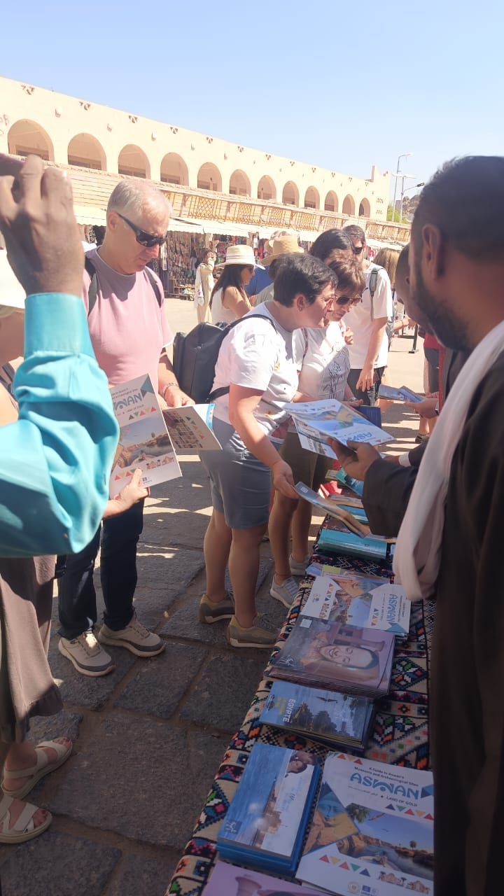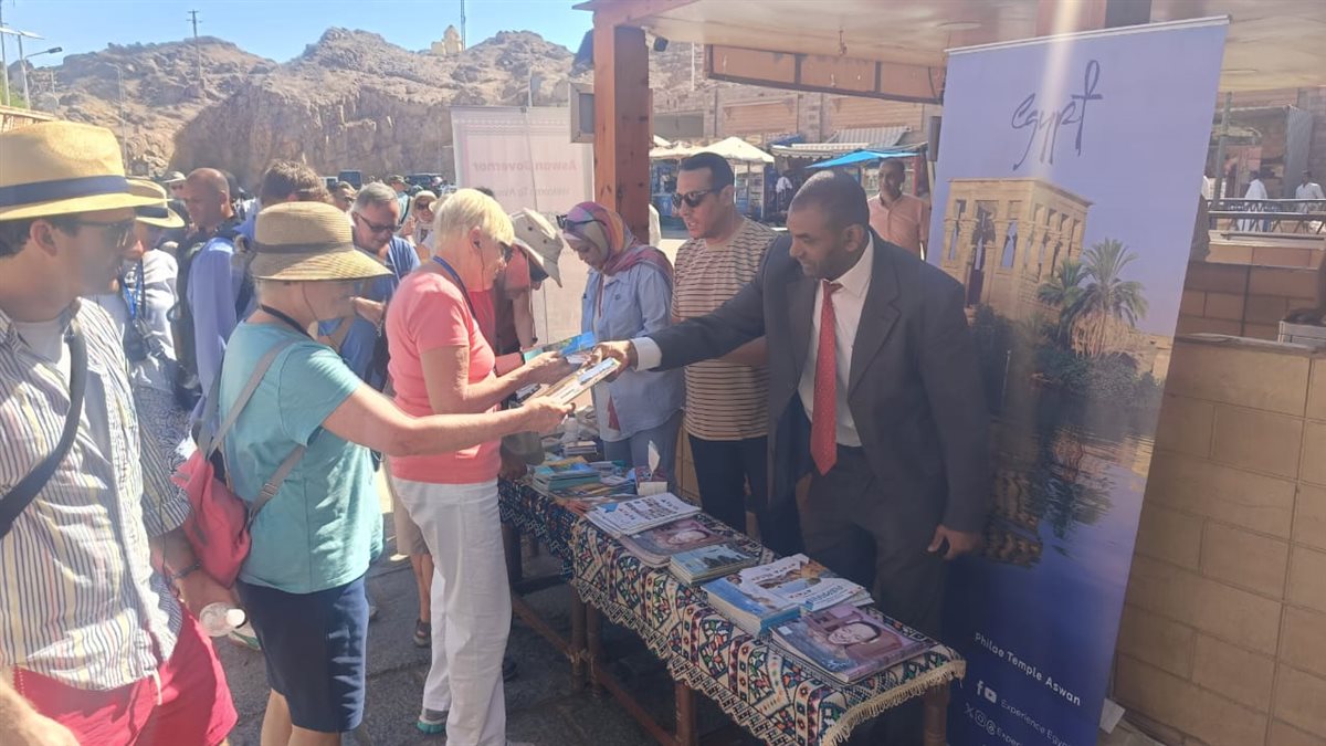 كما قدم مدير عام آثار أسوان ومدير معبد فيلة كتيبات بها المعالم الأثرية المتواجدة بجمهورية مصر وأيضا المتواجدة باسوان، وكانت توزيع الكتيبات والبروشولات بالمجان للجنسيات المختلفة من السائحين الوافدين لزيارت المعبد.