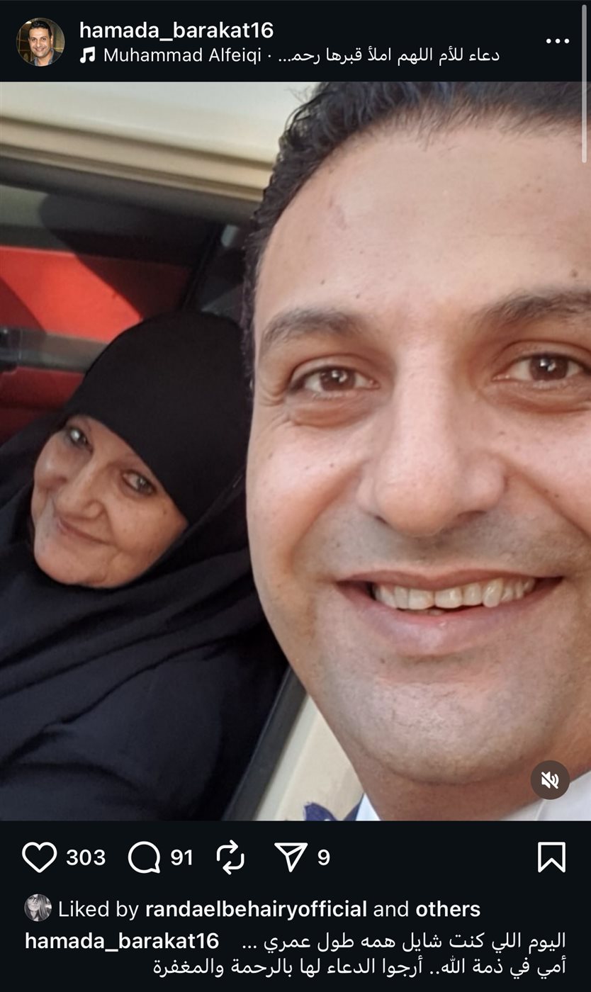 وتوفيت والدة الفنان حماده بركات حسبما أعلن خلال منشور عبر حسابه الشخصي بموقع تبادل الصور والفيديوهات “إنستجرام” قائلًا: “اليوم اللي كنت شايل همه طول عمري، أمي في ذمة الله.. أرجو الدعاء لها بالرحمة والمغفرة”.