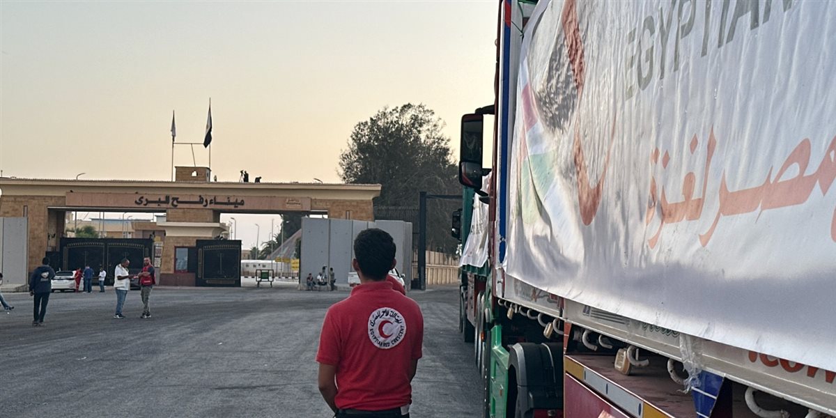 ويتواجد الهلال الأحمر المصري كآلية وطنية لتنسيق وتفويج المساعدات إلى غزة، على الحدود منذ بدء الأزمة حيث لم يتم غلق معبر رفح من الجانب المصري نهائيًا، وواصل تأهبه فى كافة المراكز اللوجستية وجهوده المتواصلة لدخول المساعدات التي بلغت أكثر من نصف مليون طن من المساعدات الإنسانية والإغاثة، وذلك بجهود 35 ألف متطوع بالجمعية.