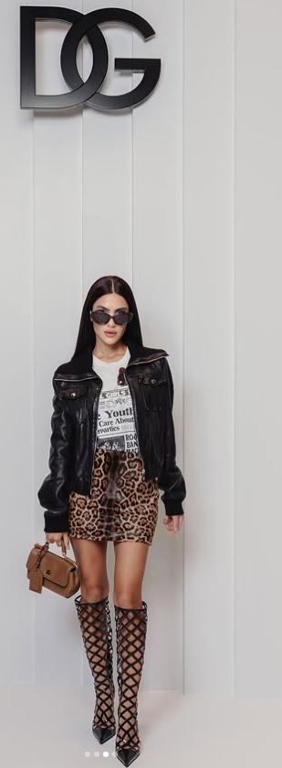 وبدت هدى المفتي بإطلالة شتوية أنيقة، مرتديه تي شيرت ونسقت عليه ميني جيب تايجر وعليه جاكيت قصير صمم من الجلد الأسود فيما انتعلت بوت طويل وصل لحدود الركبة مخرم لتوكب موضة أحذية شتاء 2026.