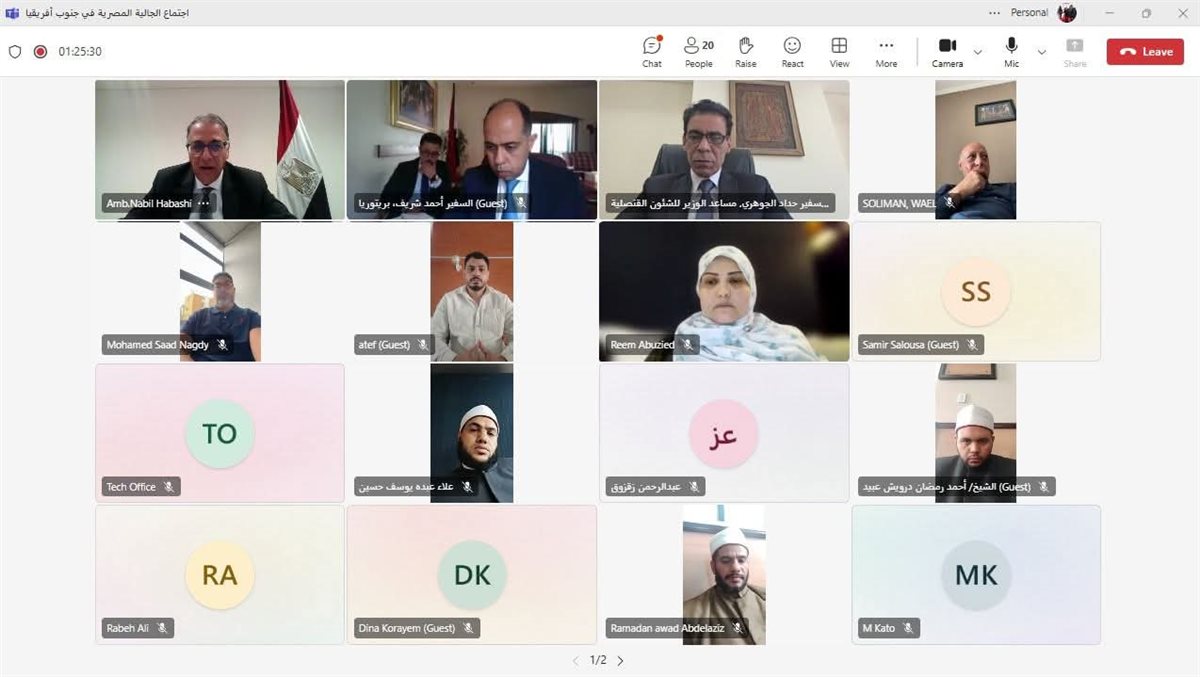 جاء ذلك خلال لقاء افتراضي عقده نائب الوزير مع أبناء الجالية المصرية في جنوب أفريقيا وبتسوانا وليسوتو، بمشاركة السفير حداد الجوهري مساعد وزير الخارجية للشئون القنصلية والمصريين في الخارج، والسفير أحمد علي شريف سفير مصر في جنوب أفريقيا.