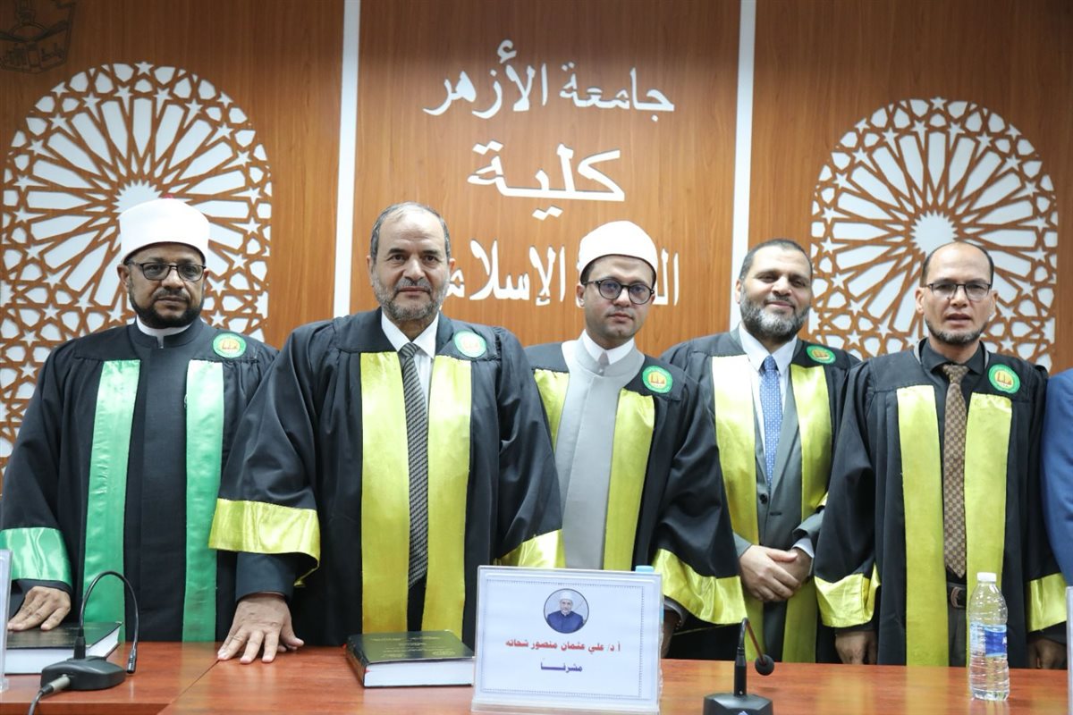 وضمَّت لجنة المناقشة والحُكم كلًّا مِن: أ.د. محمد عبد الدَّايم الجندي، الأمين العام لمجمع البحوث الإسلاميَّة (مناقشًا خارجيًّا)، وأ.د. محمد يوسف خضر، الأستاذ بقسم الثقافة الإسلاميَّة في الكليَّة (مناقشًا داخليًّا)، وأ.د. علي عثمان منصور شحاتة، الأستاذ بقِسم الثقافة الإسلاميَّة وعميد الكليَّة (مشرفًا)، وأ.د. أيمن فايز كمال عطا الله، الأستاذ المساعد بالقِسم ذاتِه (مشرفًا مشاركًا).