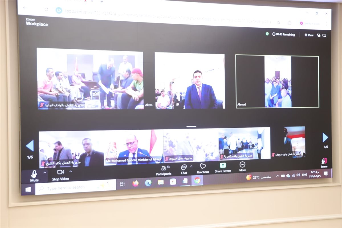 شهد وزير العمل محمد جبران، صباح اليوم الاثنين، من مكتبه بالعاصمة الإدارية الجديدة، عن طريق "الفيديو كونفرانس "وفي وقت واحد، فعاليات تسليم عقود عمل، نظمتها مديريات العمل في 26 محافظة، وذلك بتوفير أكثر من 700 فرصة عمل في شركات القطاع الخاص معظمهم "ذوي همم".