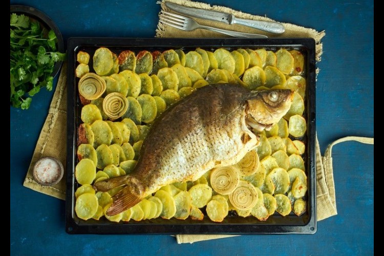 - السمك : كيلو ونصف (سمكة الدنيس، منظفة ومغسولة جيداً)