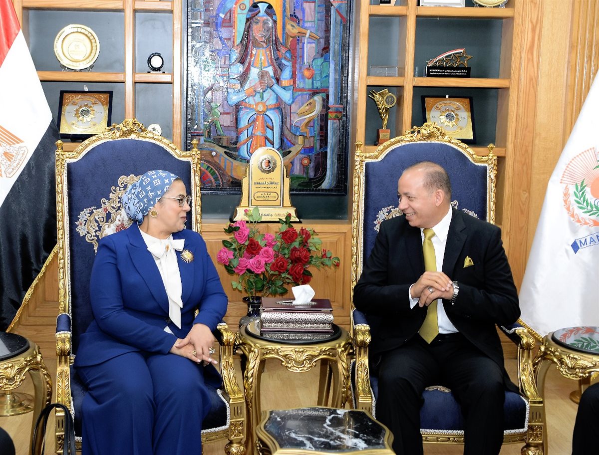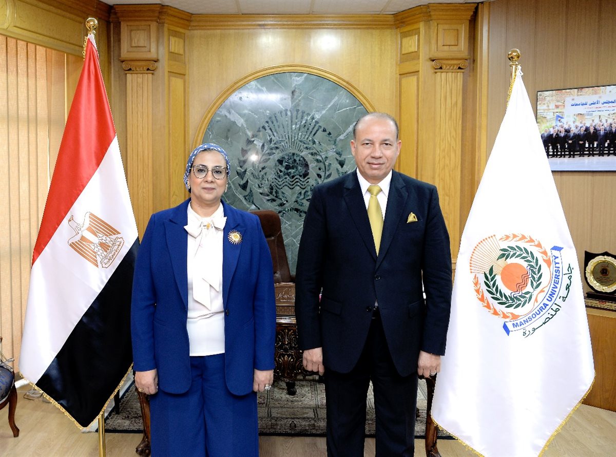 رئيس جامعة المنصورة يستقبل المستشارة أمل عمار خلال زيارتها لجامعة المنصورة